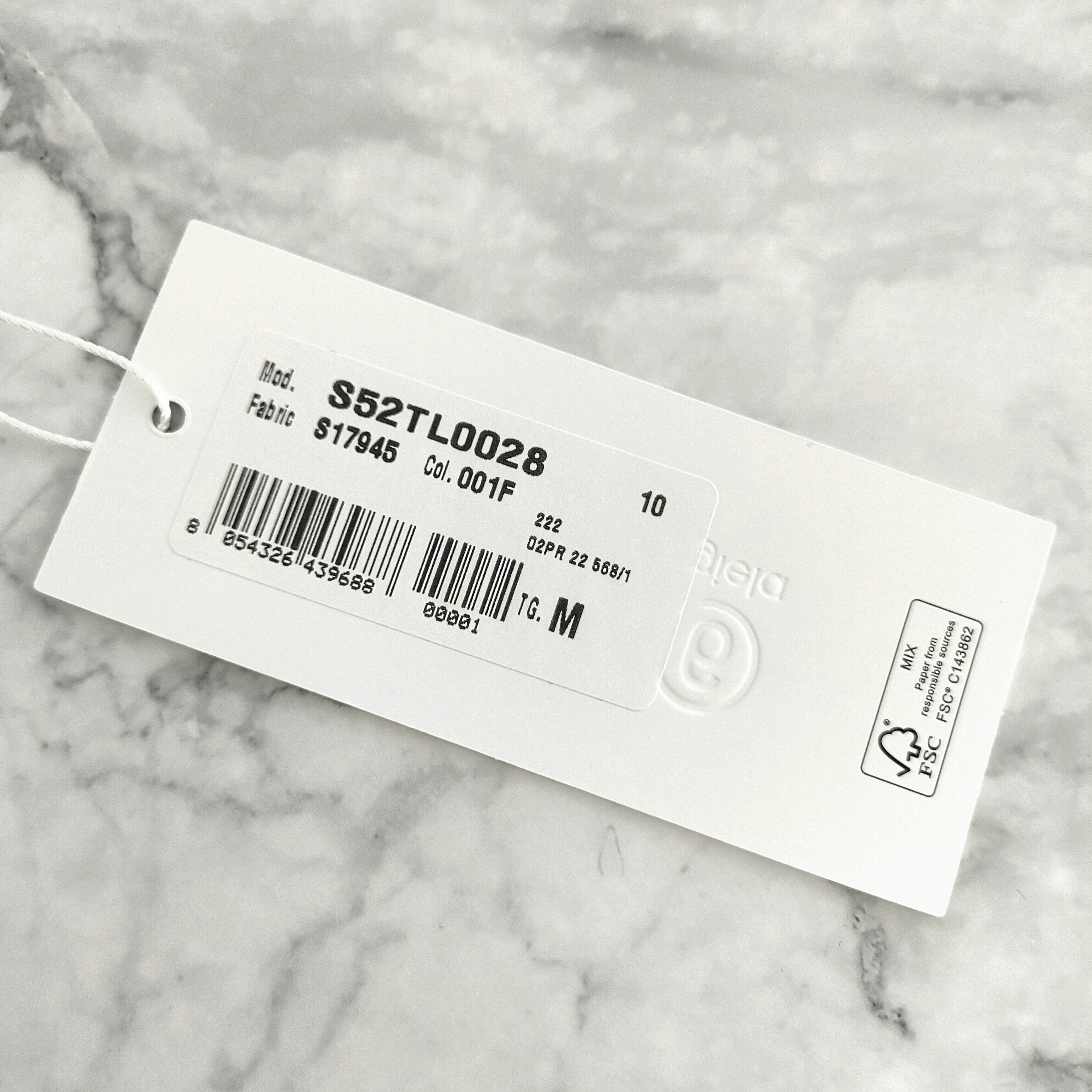 現在のMaison Margielaがその特徴としてブランドタグの4箇所をしつけ糸で縫い付けているのに対し、MM6は1本の白いステッチでラベルを縫い付けている。